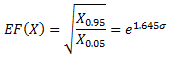 L'intervalle de confiance [X0.05, X0.95] associée à un niveau de confiance de 0,95 d'une variable aléatoire X est défini ci-après.